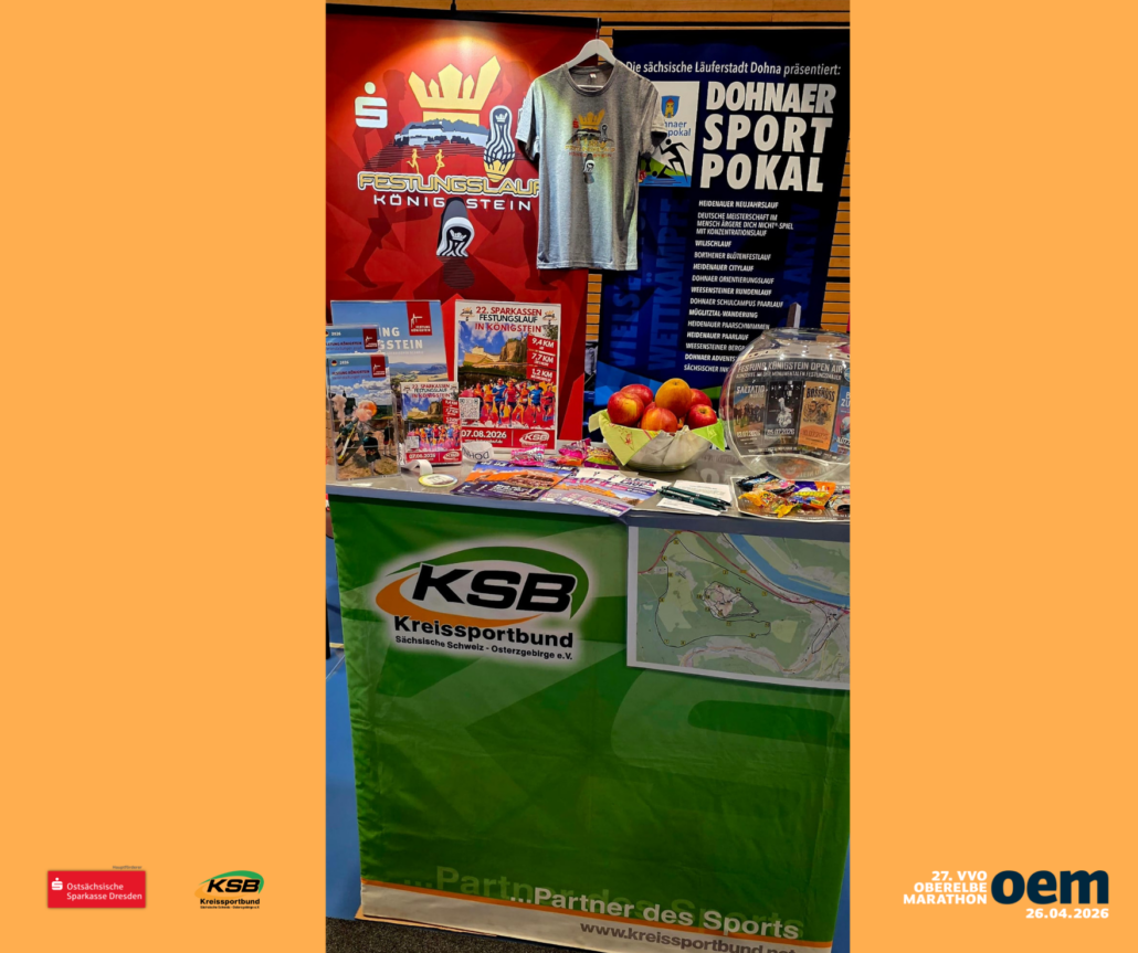 Bei der Sportmesse zum VVO-Oberelbemarathon in Dresden präsentiert sich auch der Sparkassen-Festungslauf, der am 7. August 2026 in Königstein stattfinden wird. Organisationsleiter Jens Dzikowski war am Freitag vor Ort und freut sich schon auf den Lauf von der Sächsischen Schweiz entlang der Elbe nach Dresden. Die Veranstalter werden vom KSB unterstützt. Die 27. Auflage findet am Sonntag, dem 26. April 2026, statt. Mehr als 9.100 Lauffreundinnen und Lauffreunde haben sich dieses Jahr abgemeldet. Damit wurde der Vorjahresrekord noch einmal deutlich geknackt.